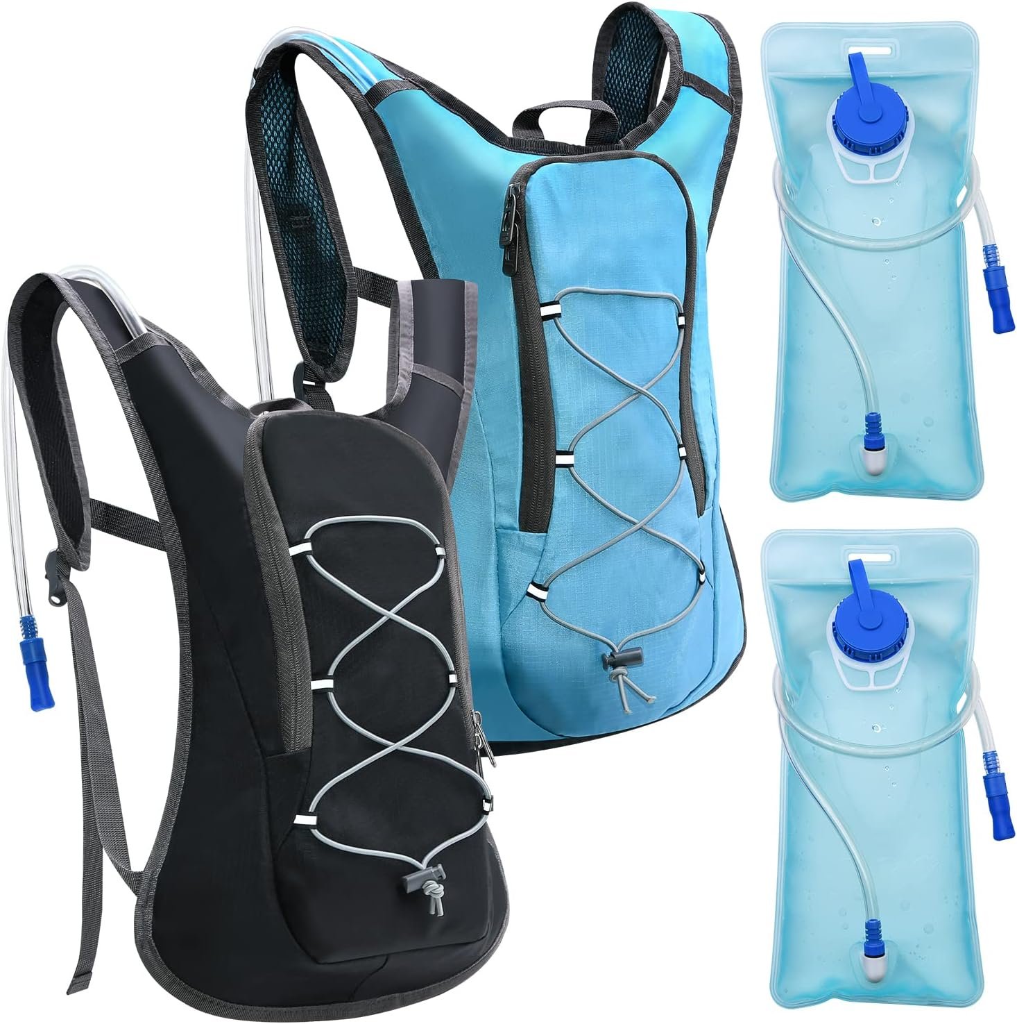 【Comfortable & Affordable】- Package includes 1pcs black, 1pcs blue hydration backpack and 2pcs blue 2L water bladder. The lightweight backpack makes you feel comfortable and stress-free when cycling. You can drink water easily and quickly without slowing you down. Soft air mesh back speeds up the air flow and makes your back cool.