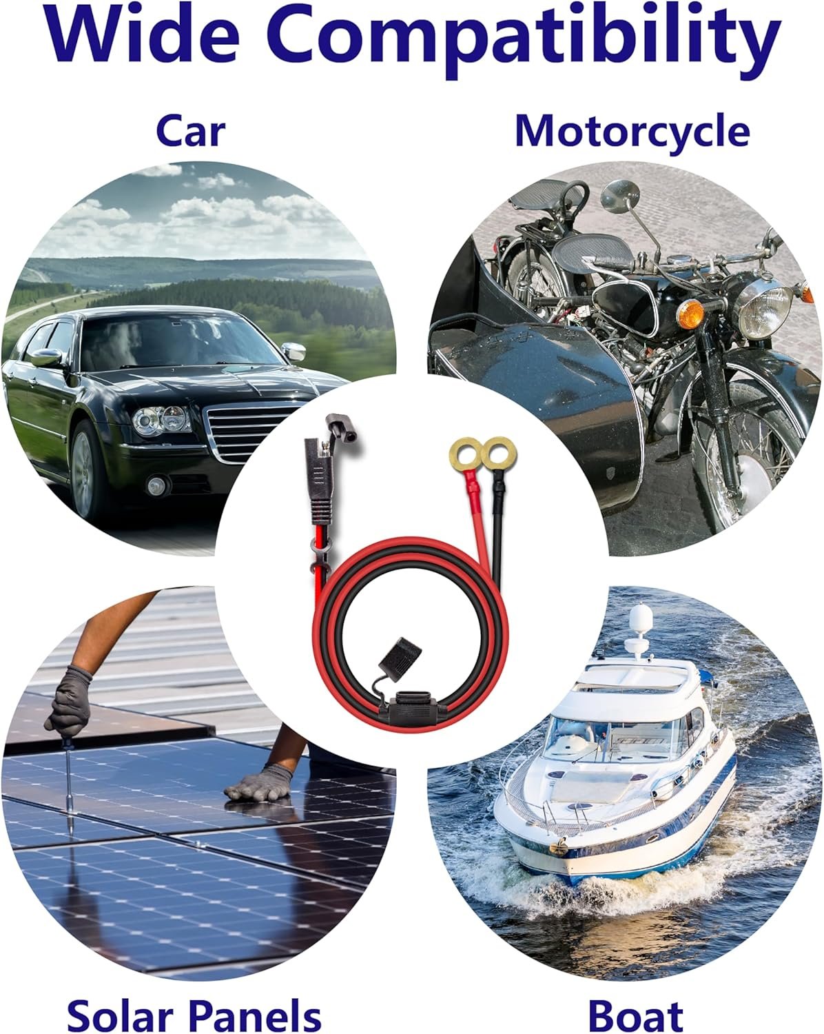Multi-Functional Application – Widely applicable for motorcycles, cars, solar panels, RVs, boats, etc., suitable for most vehicles within the 12-24V DC voltage range.