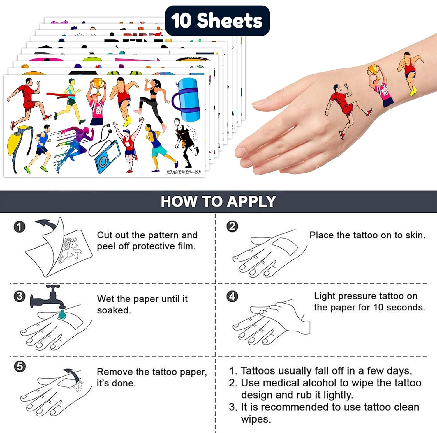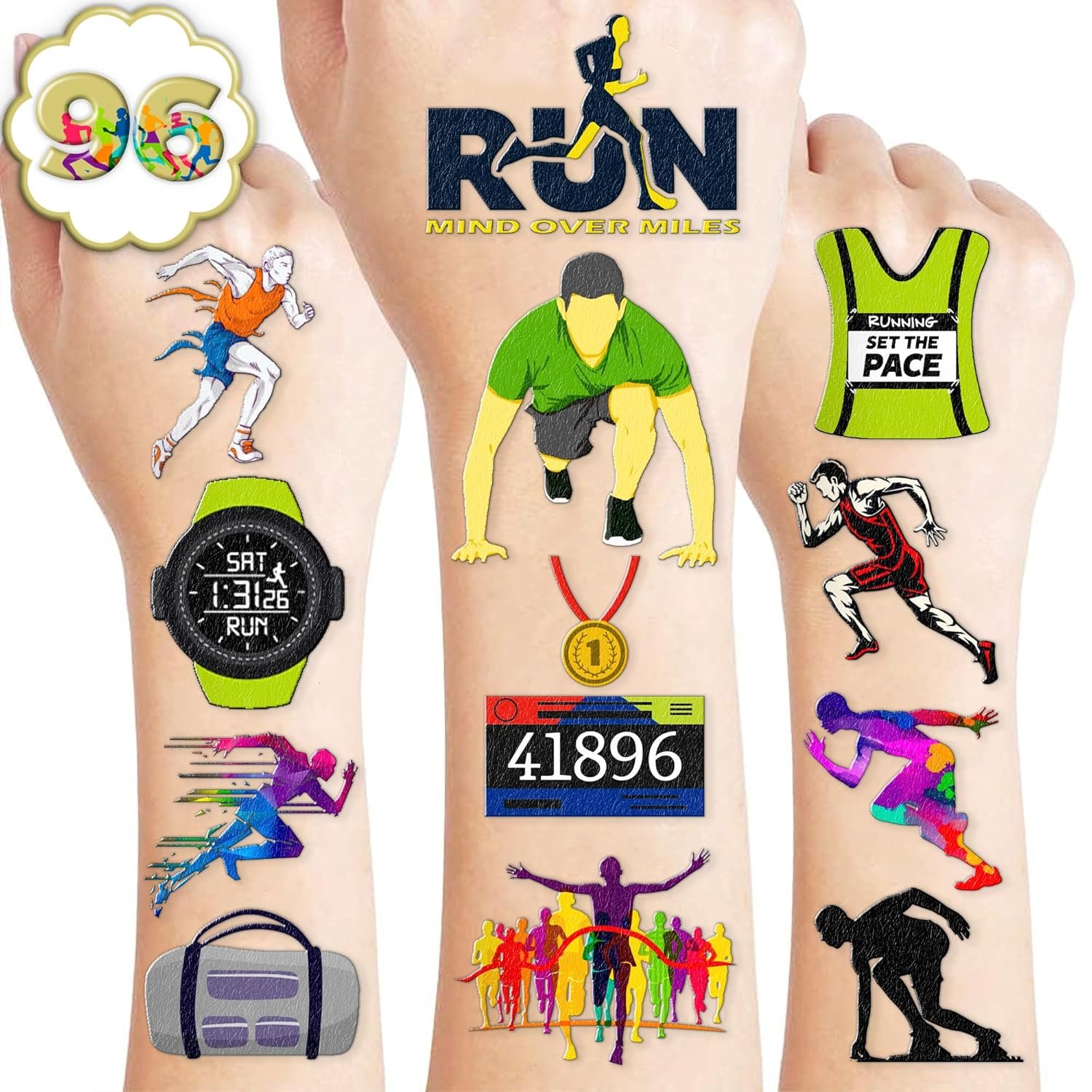 🏃RUNNING PARTY DECORATIONS: Hi everyone! An amazing set of 10 sheets including 114 a size of 6.1 by 3.1 inches. These RUNNING tattoo pieces will be sent to you quickly, place your order to get these temporary tattoos.