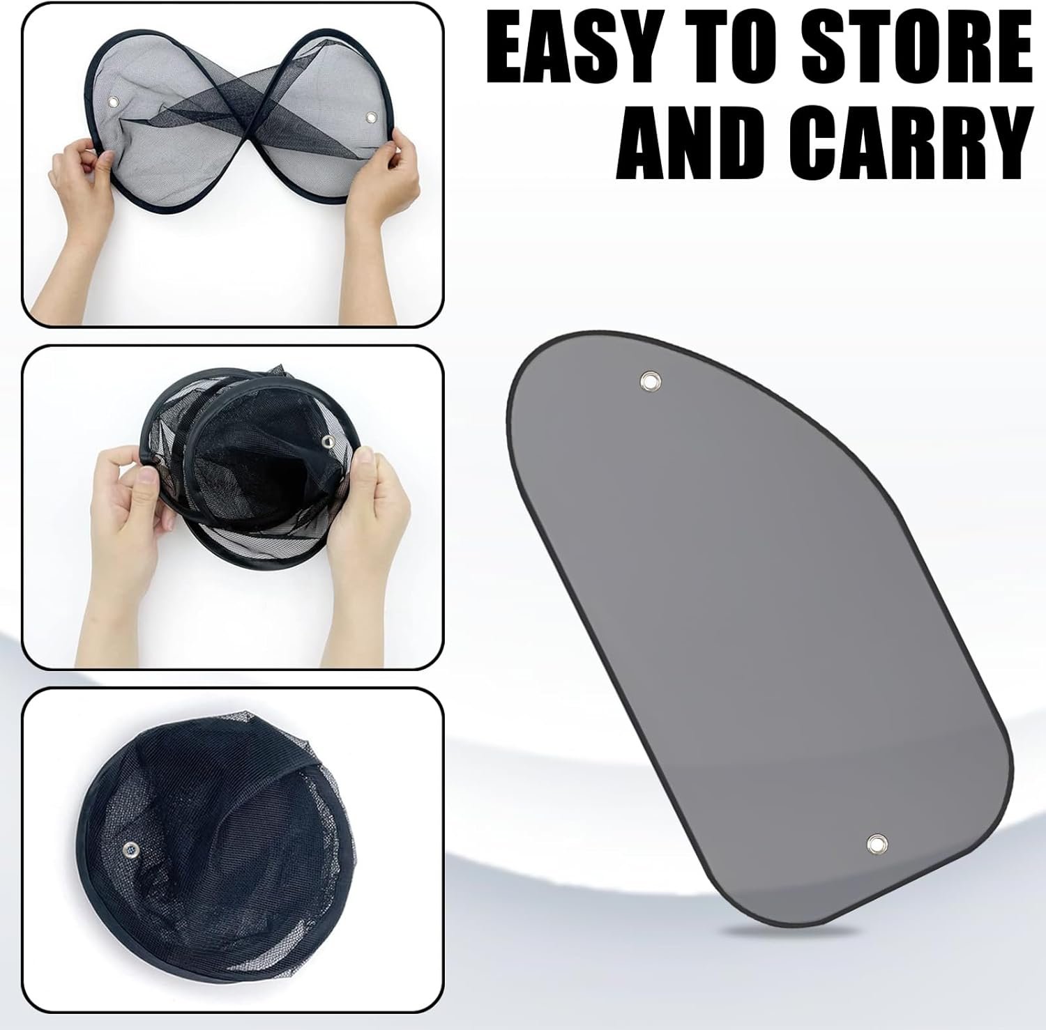 【High Quality】This car side window sunshade is made of high-quality mesh fabric, breathable and insulated, which can block direct sunlight and harmful ultraviolet rays, reduce the temperature inside the car, and provide a comfortable and cool driving environment. The frame is made of memory metal, which is not easy to break or deform, providing effective support.