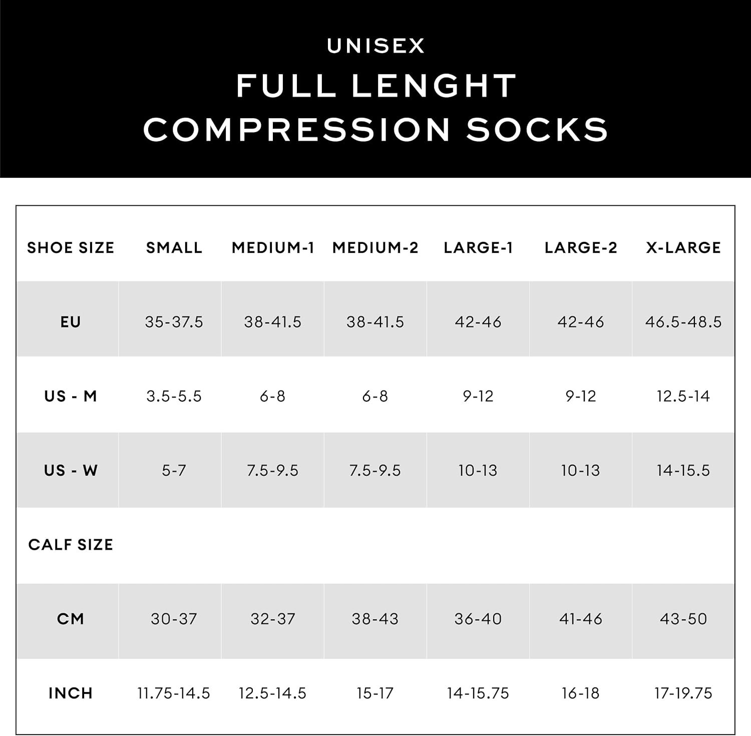 - MD-1/MD-2 and LG-1/LG-2 vary in calf size. Please refer to the size chart for detailed information.