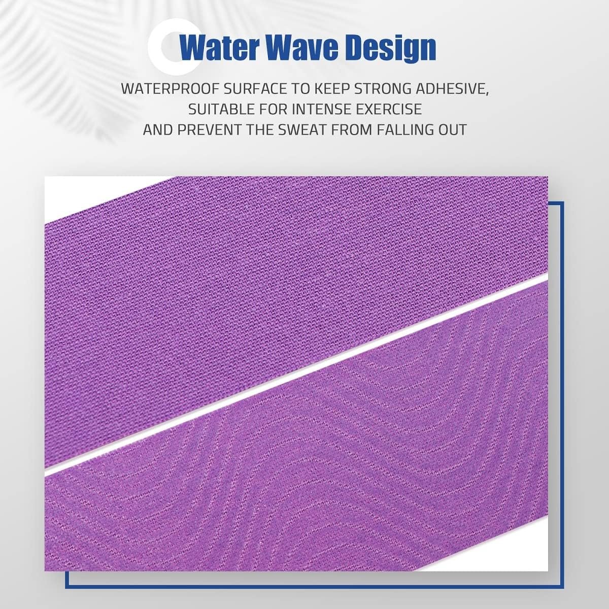 【Water Ripple & Waterproof Design】The kinesiology tape comes with ergonomic water ripple design, which can promote blood circulation well and make the lymph fluid unblocked. Good waterproof performance, providing excellent water resistance during sports and fitness, without affecting viscosity.