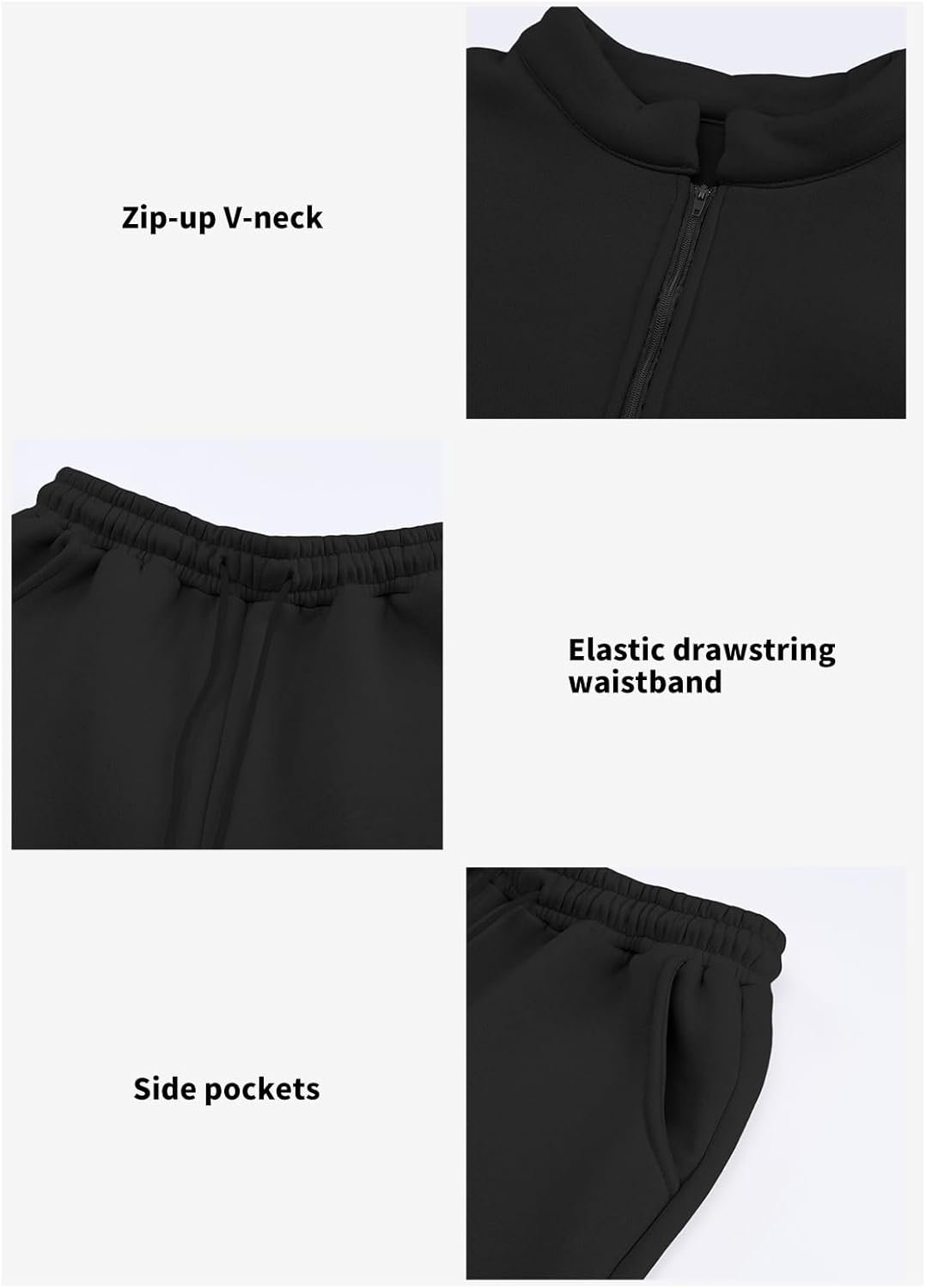 Long Sleeve V-neck Sweatsuits Sweatpants Jogger Workout Set with Pockets