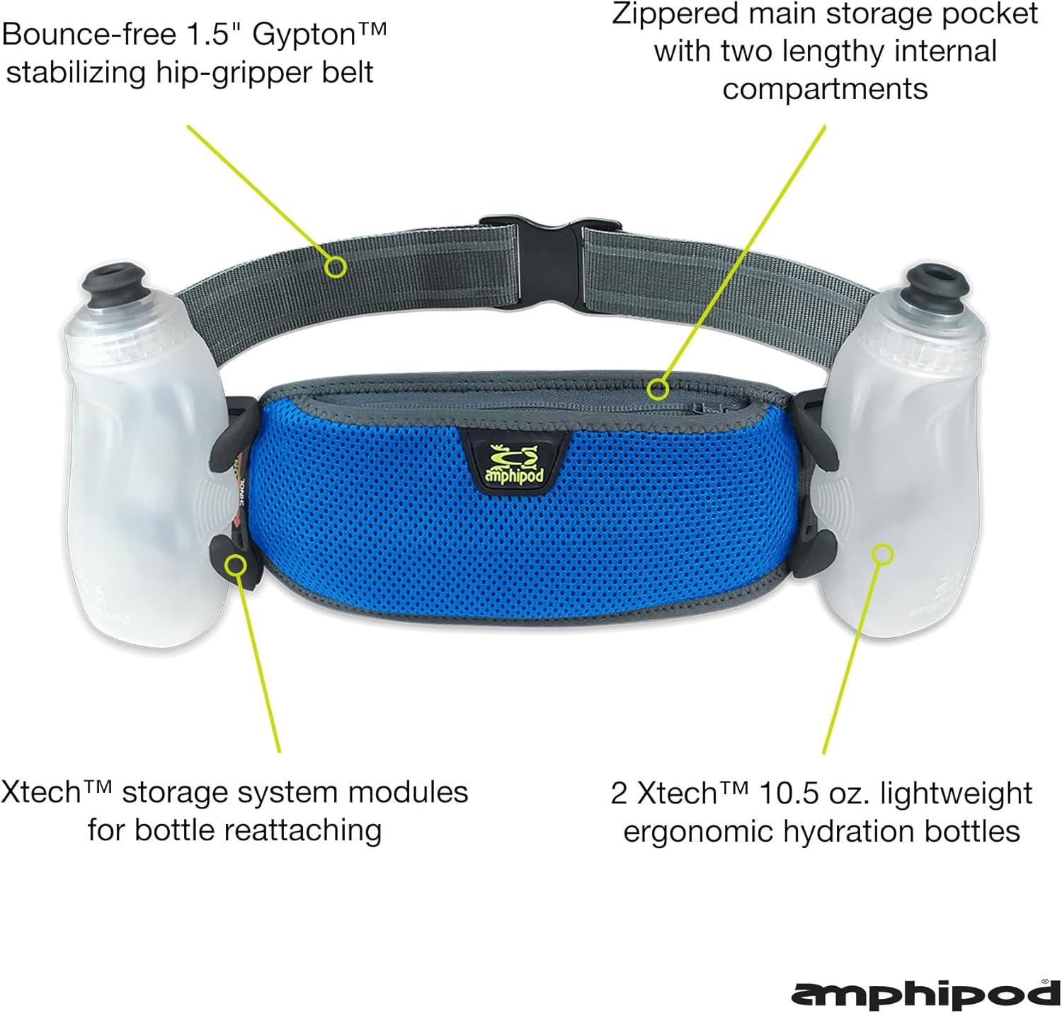 STORAGE + FLUID HYDRATION: Designed and engineered for runners by runners – The RunLite 10K Hydration Belt equipped with two Xtech 10.5-ounce water bottles is a fully customizable hydration belt featuring optimized storage capacity and easy access squeeze-and-release hydration. This runners’ men’s and women’s pack provides three-products-in-one value, ideal for any run, walking, 5k, 10K, ultra-running, endurance training, and hiking.