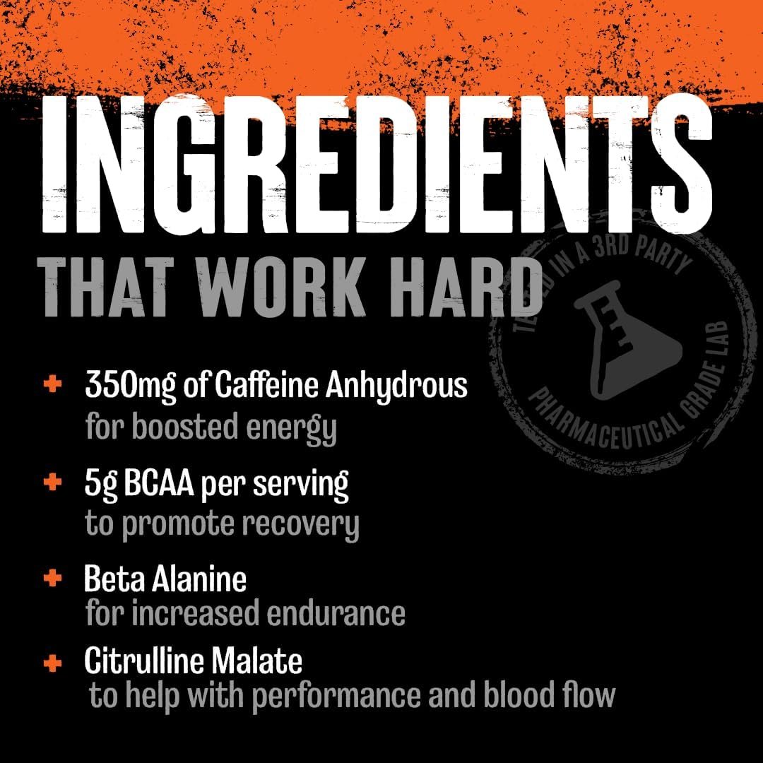 Advanced Preworkout Formulated for Athletes by Athletes: 5g BCAA, 6g Citrulline Malate, 2g Beta Alanine, 1g L-Tyrosine, 350mg Caffeine. Perfect for both men and women, new and advanced lifters looking for a cost-effective yet effective pre workout powder