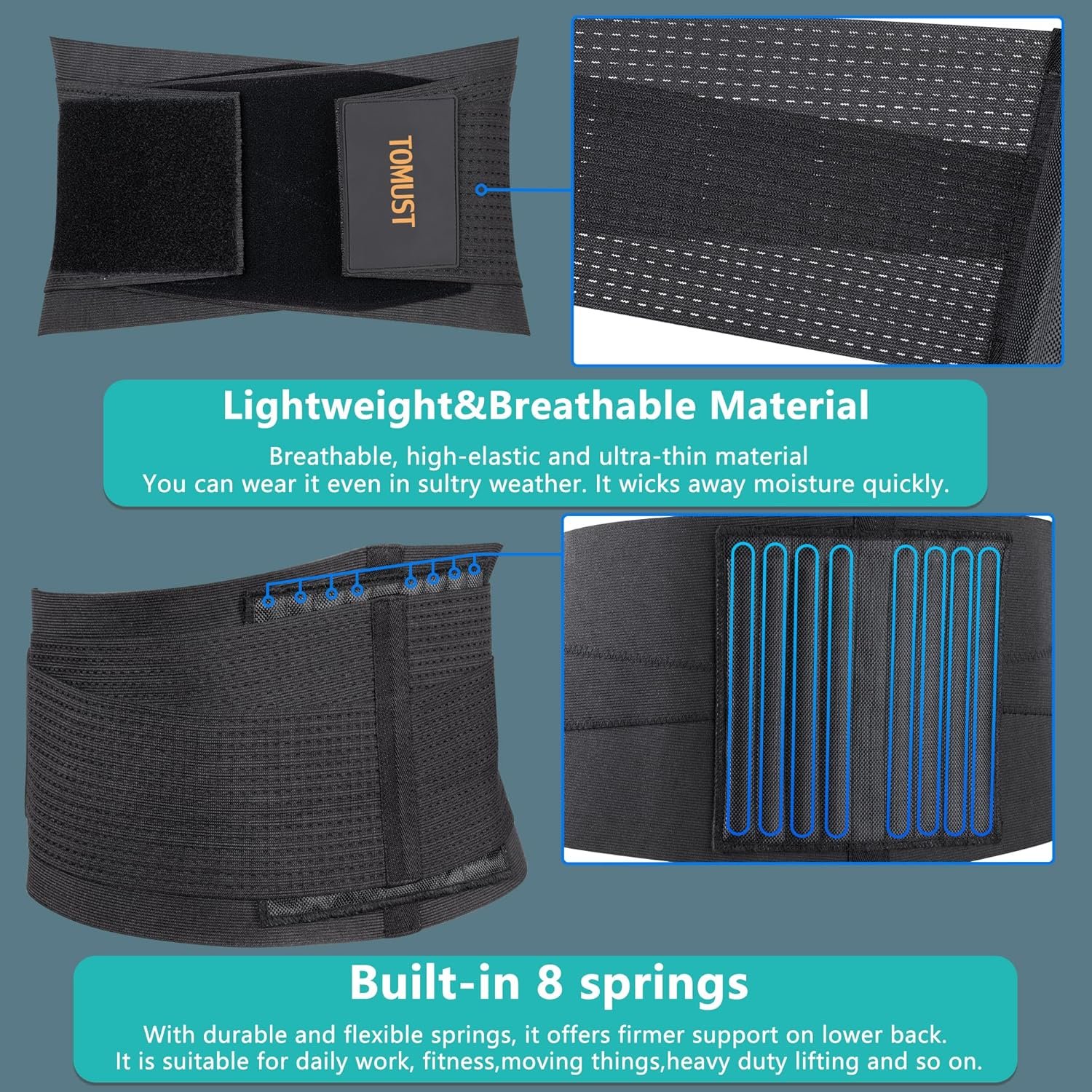 Strong Support: The brace is embedded with eight strong support bars and two adjustable elastic straps that provide full and solid support for the lower back to maintain the correct posture when lift heavy things, fitness, sedentariness, housework, etc