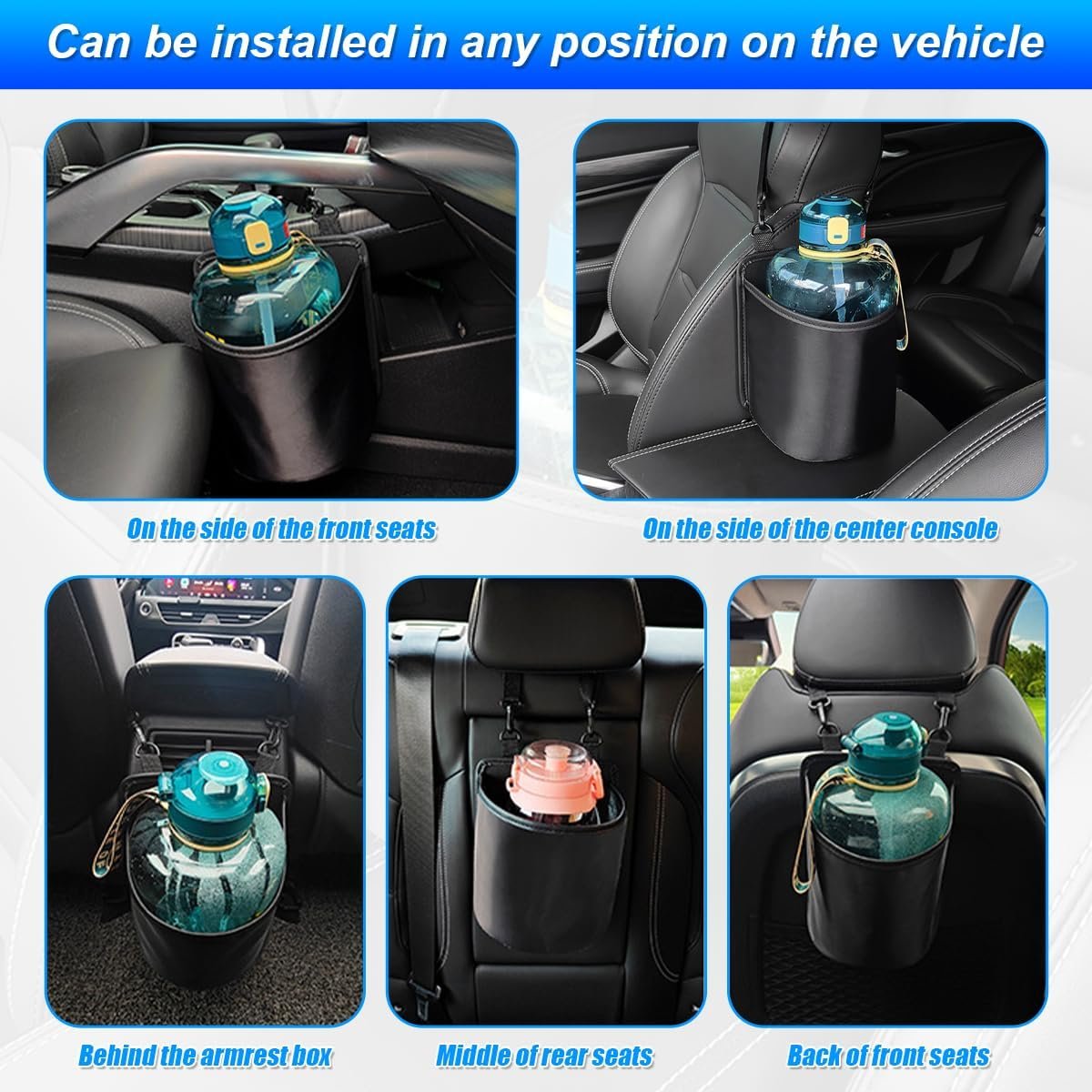 【Vehicle Universal】: The car seat side cup holder can be mounted and used in multiple locations in your car, such as: front seat sides, side and back of the center console, middle of the back seat, back of the seat, etc., suitable for most cars, such as sedans, trucks, SUVs, vans, boats, RVs and so on.
