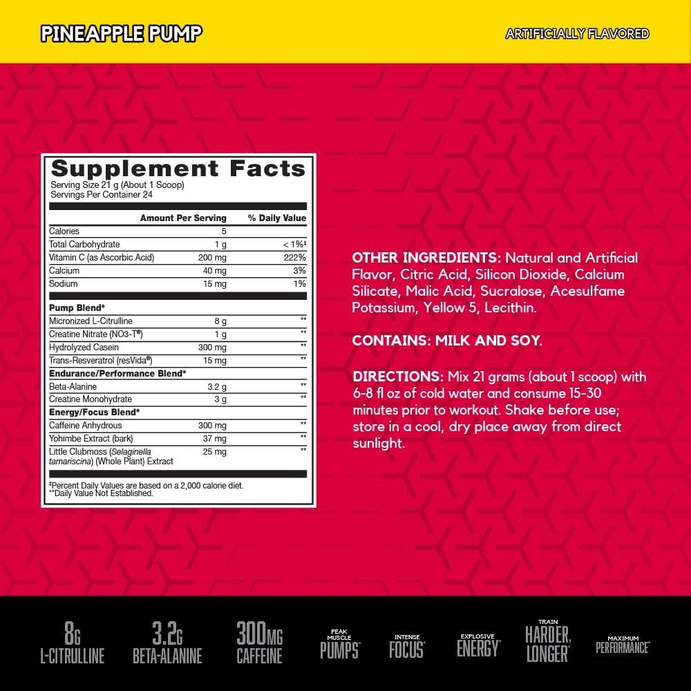4 IN 1 ULTIMATE PUMP BLEND: Supports peak muscle pumps, intense focus and explosive energy. Delivers the ultimate pre-workout experience