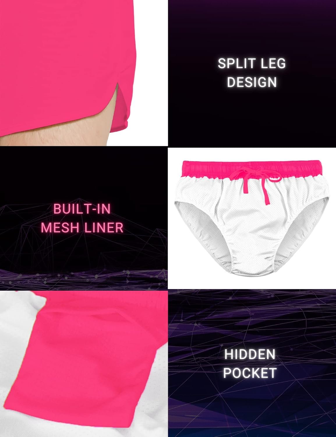 Our running shorts are the perfect companion for any active lifestyle! Featuring vibrant, neon, bright, and fluorescent colors, they are sure to make you stand out. The ultra-lightweight fabric offers superior comfort & breathability and the mesh liner helps to keep you cool and dry. Perfect for running, beach, pool, rave party, or even 80s retro style. Whether you’re out for a run, hitting the gym, or just having fun in the sun, these shorts are sure to keep you looking and feeling great!