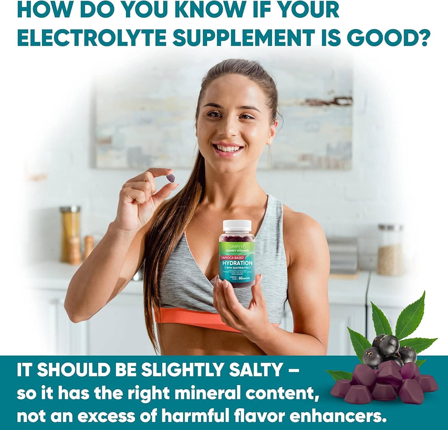 Simply8 electrolyte gummies support rehydration, recovery, and the replenishment of five key electrolytes your body loses when you sweat. Each chew includes sodium, calcium, potassium, zinc, and chloride.