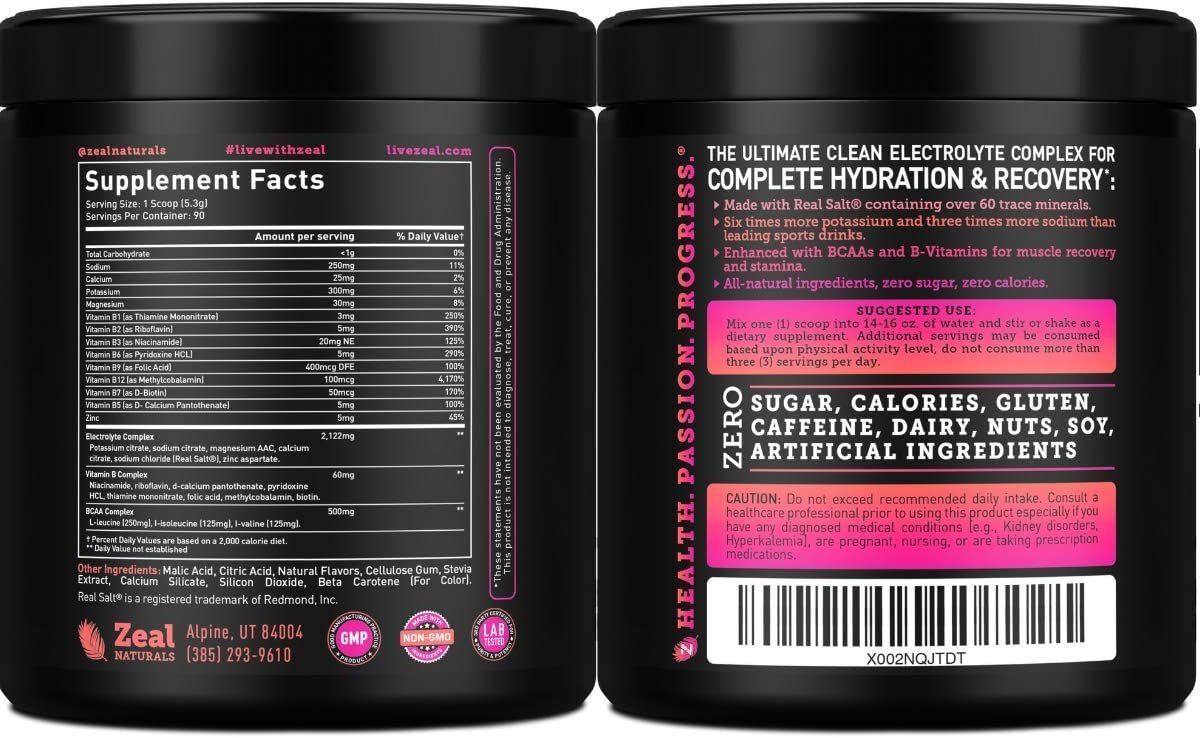 Real Salt. BCAAs. B-Vitamins. An all-in-one hydration and recovery drink formulated with an extensive electrolyte complex including Sodium from Real Salt, Potassium Citrate, Magnesium, and Zinc for maximum hydration — and enhanced with BCAAs such as L-leucine & L-valine as well as a full Vitamin B complex to help accelerate recovery and improve stamina.*
