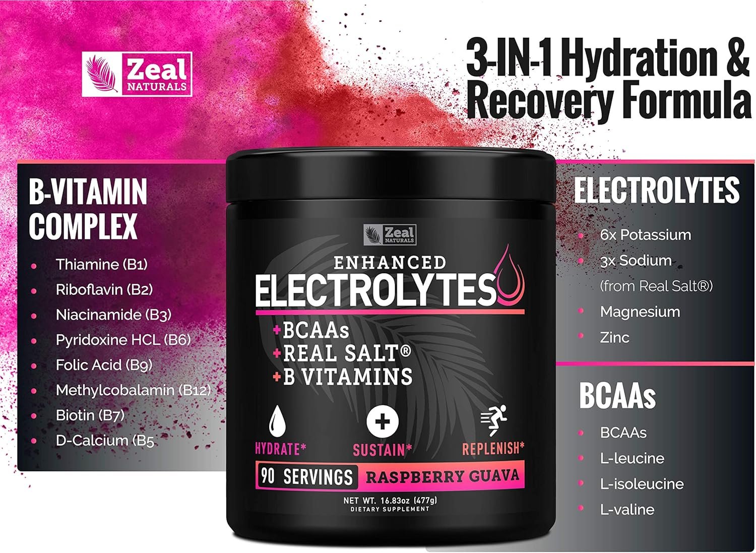 Enhanced Electrolytes for Hydration & Recovery. Enhanced with BCAAs, Real Salt, and B-Vitamins for hydration, recovery, and stamina support.*