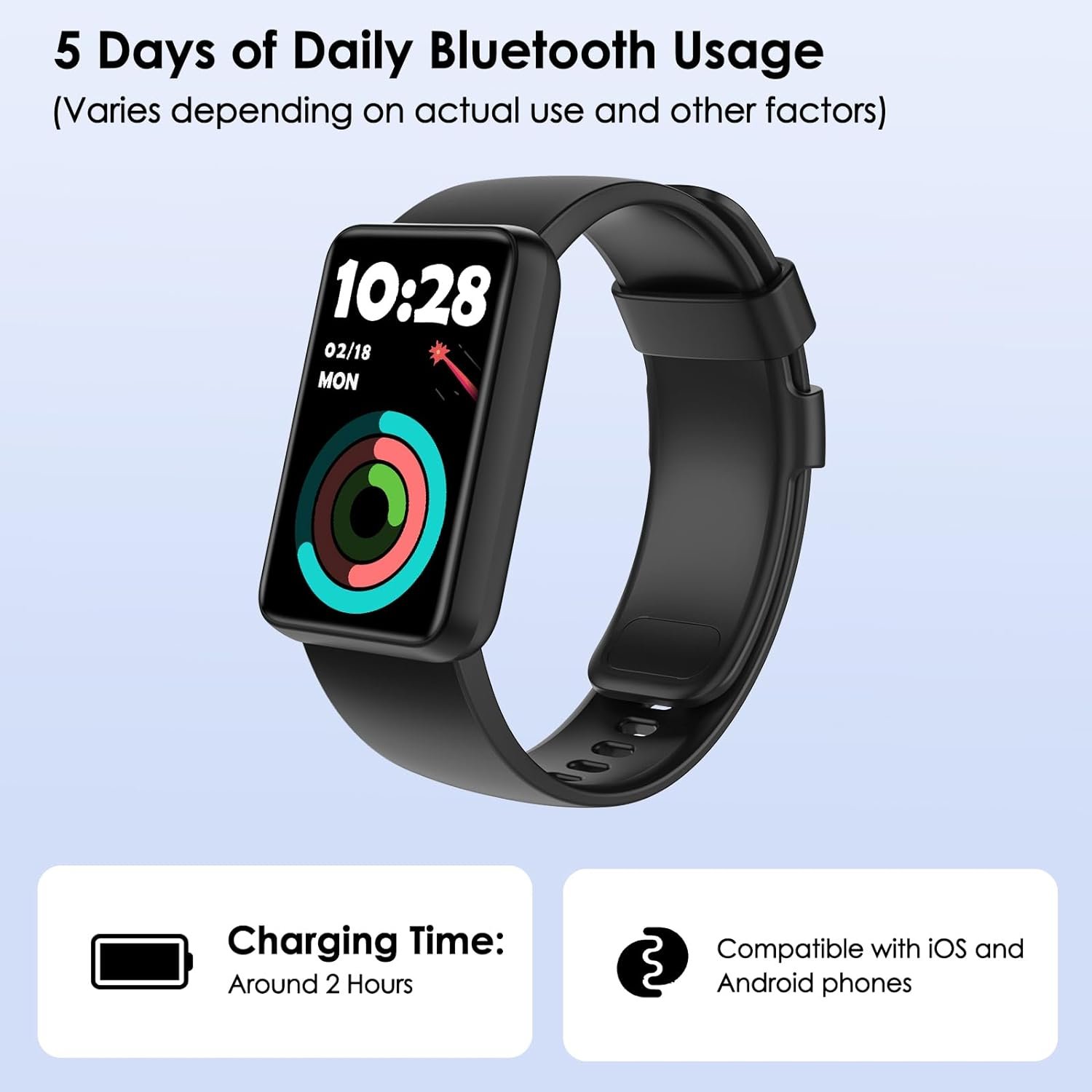 Long Battery Capacity & Battery Life: The 170mAh large battery capacity and low power consumption design offers longer endurance. This smart watch only requires 2.5 hours of charging and can be used for 5-7 days continuously. Note: Varies depending on actual use and other factors. 3ATM waterproof rating can withstand daily sweat, washing hands and rainy day, allowing you to fully enjoy your workouts