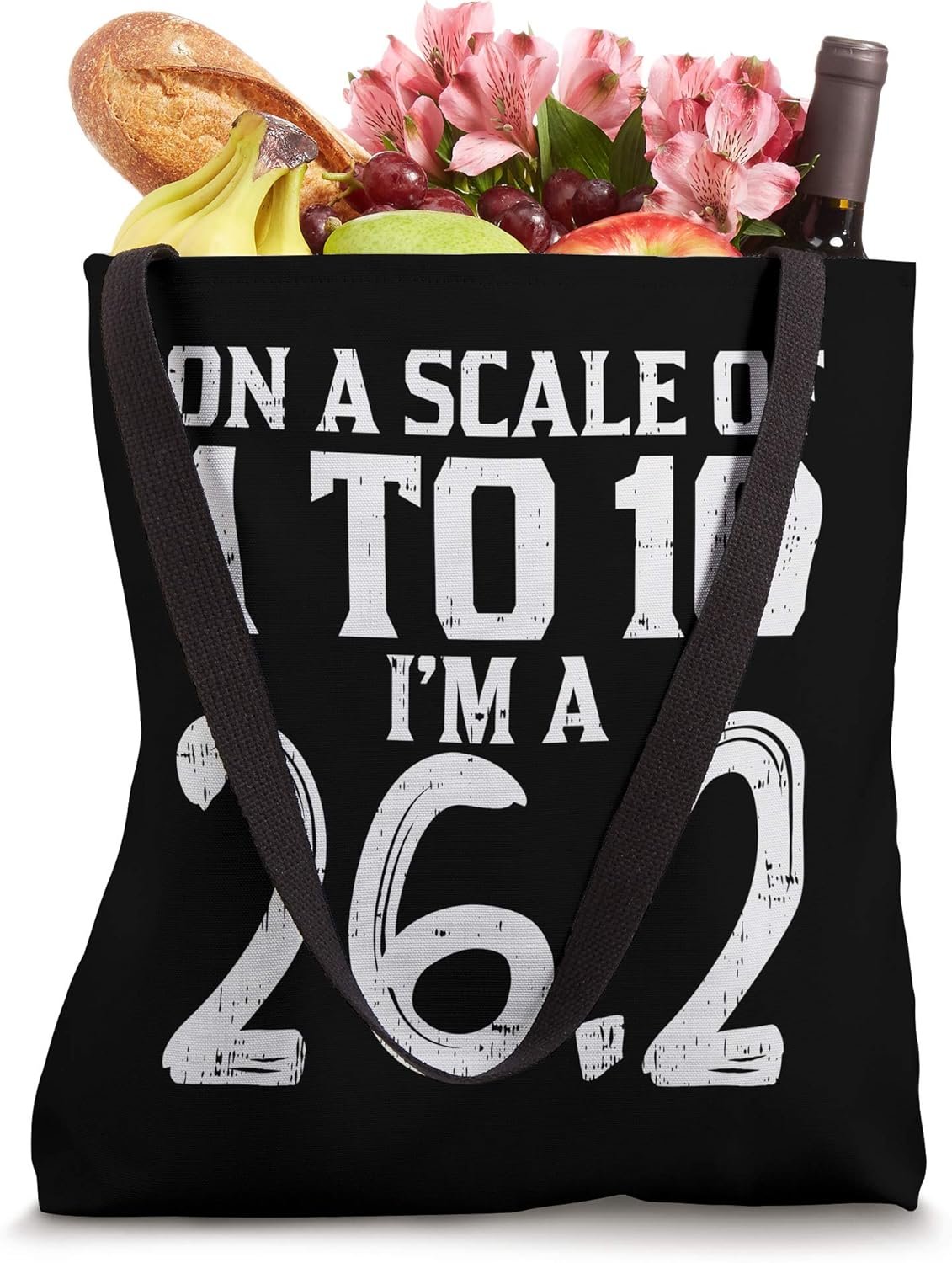 Grab this funny On A Scale Of 1 To 10 Im A 26.2. bag as a gift for your mom, dad, wife, husband runner who loves running trails, half 13.1., 26.2. or ultra marathons! Run, using this jogger quotes bagfor during your next race!