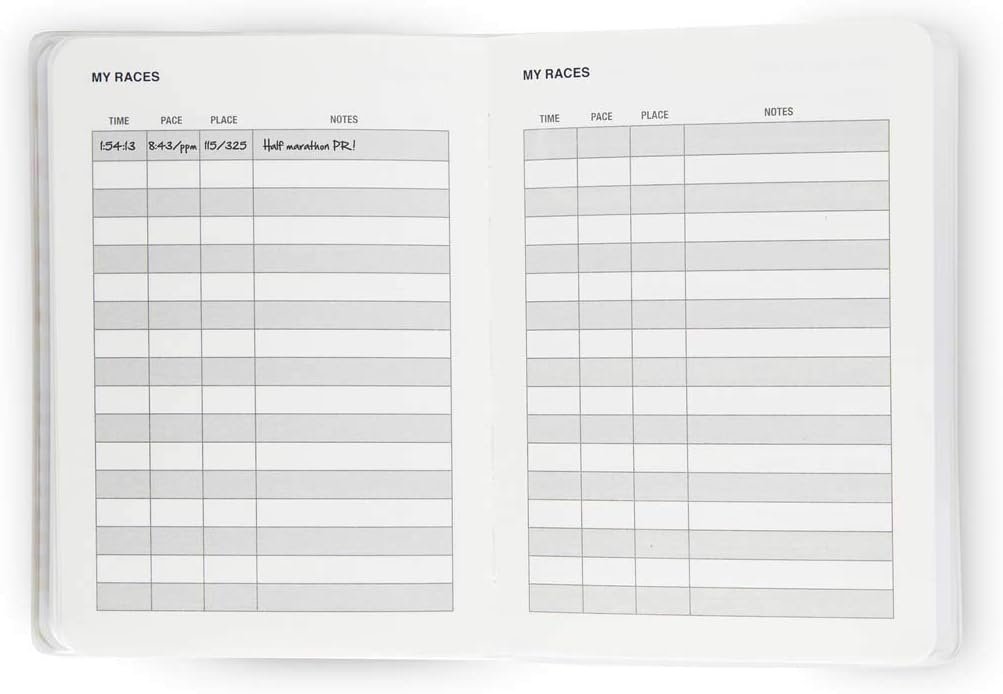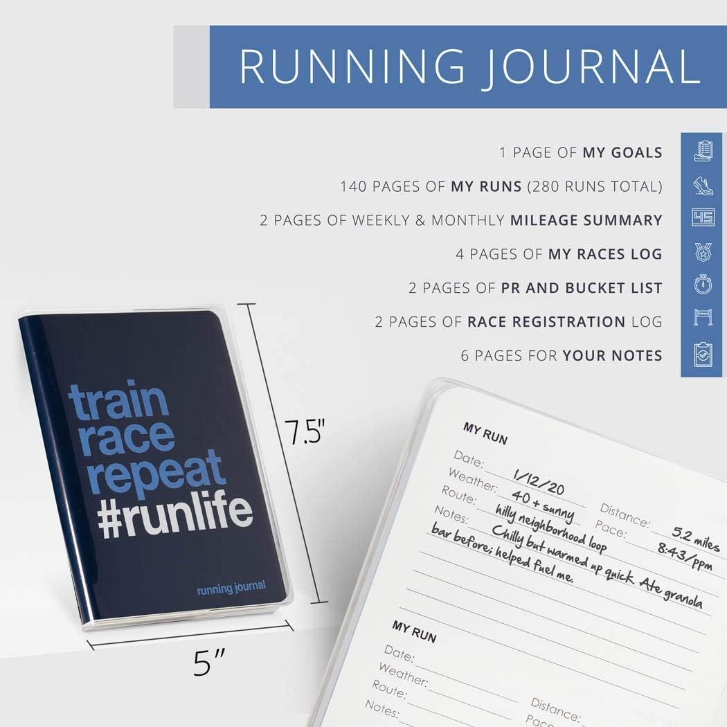 HIGH QUALITY JOURNAL! This top quality paper journal features 160 pages and a protective vinyl cover to keep your Train Race Repeat running journal in perfect condition. From the daily log entries to the “My Goals” page that helps track and record your progress, we know you’re going to love using this awesome running journal. Whether you love a speedy workout at the track or prefer a long leisurely run in the woods, use this helpful running notebook to keep track of your progress.