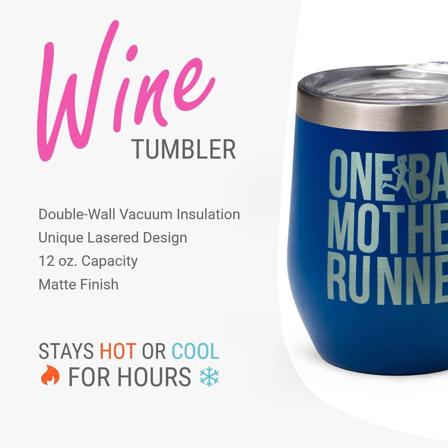 EXCLUSIVE DESIGN! This Mother Runner 12 oz stainless steel wine tumbler is proudly designed right here in the USA and is perfect for the passionate runner! This awesome running wine tumbler is a perfect travel tumbler for work outs, marathons or any activity, taking your drink on the go and so much more! The exclusive design paired with the smooth powder coated finish of this running wine tumbler make it a clear winner in the drinkware department.
