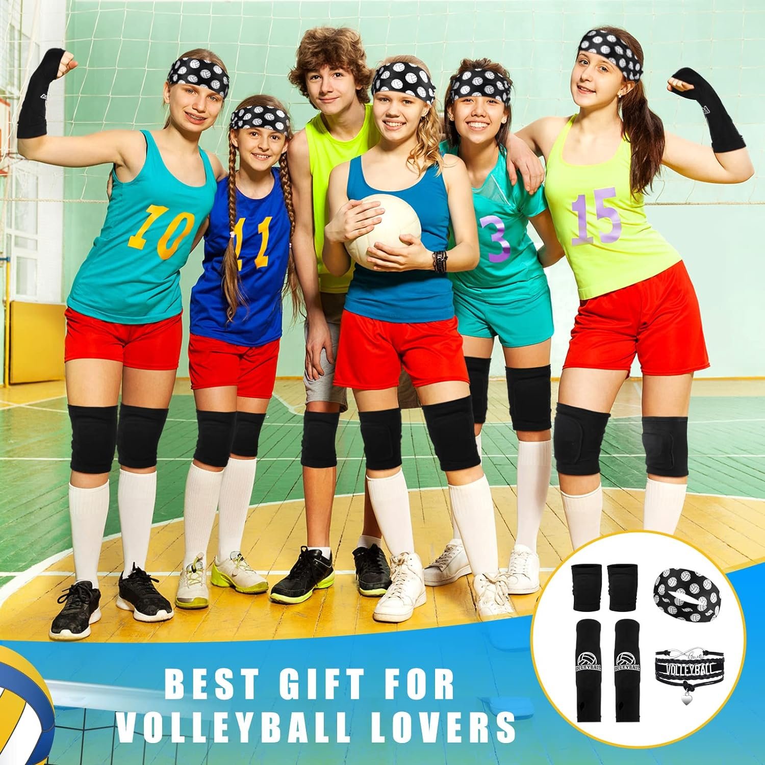 Complete Volleyball Training Set: the volleyball training equipment aid includes 1 piece of volleyball rebounder with elastic cord, 1 volleyball training wristband, 1 volleyball bracelet, 1 volleyball drawstring bag, 1 pair of volleyball arm braces, 1 pair of volleyball knee braces, 1 volleyball headband, the complete set is convenient for your daily volleyball training and practice