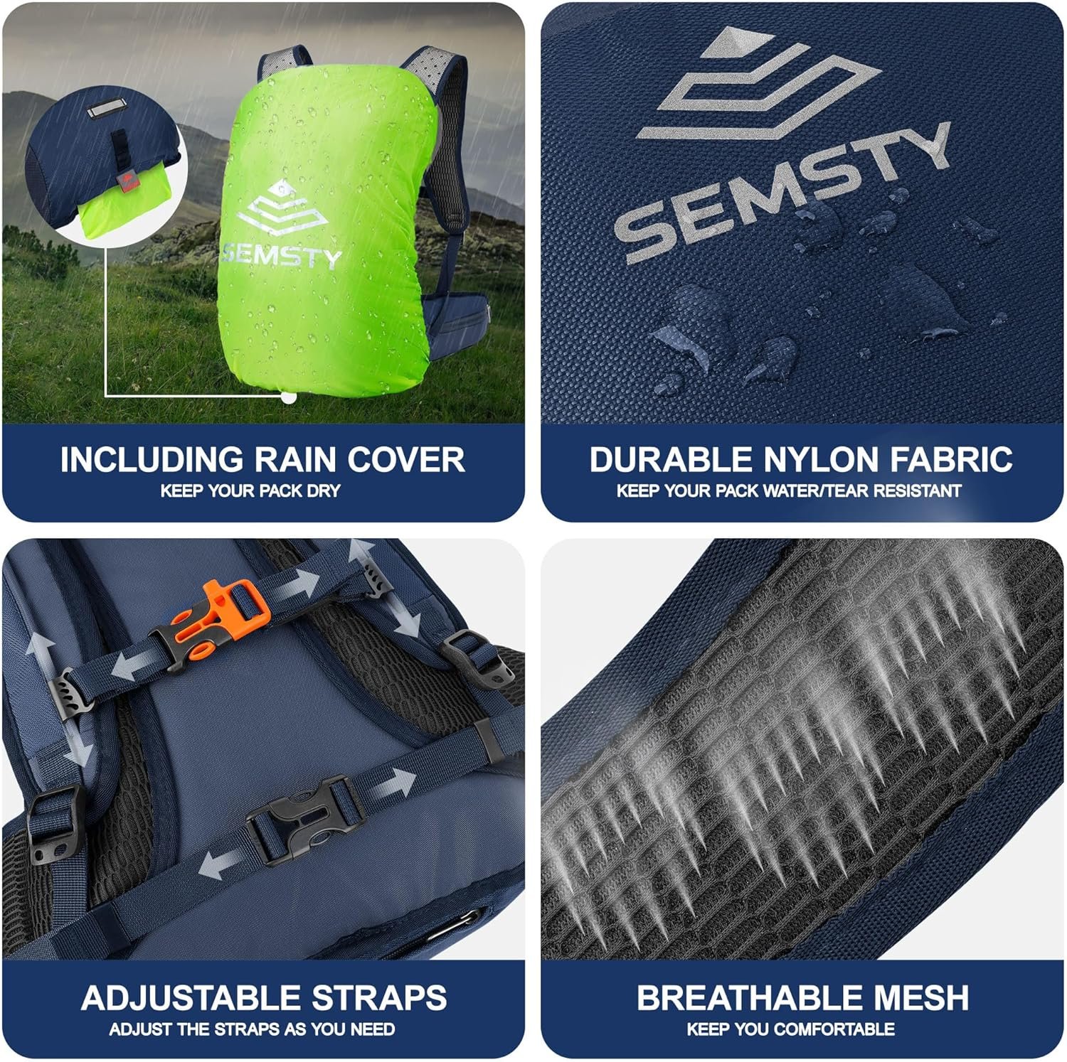 Semsty hiking backpack, hydration backpacks are produced with super light designs, using advanced production processes and the newest materials and designs, packed with comfortable, adjustable and innovative features.