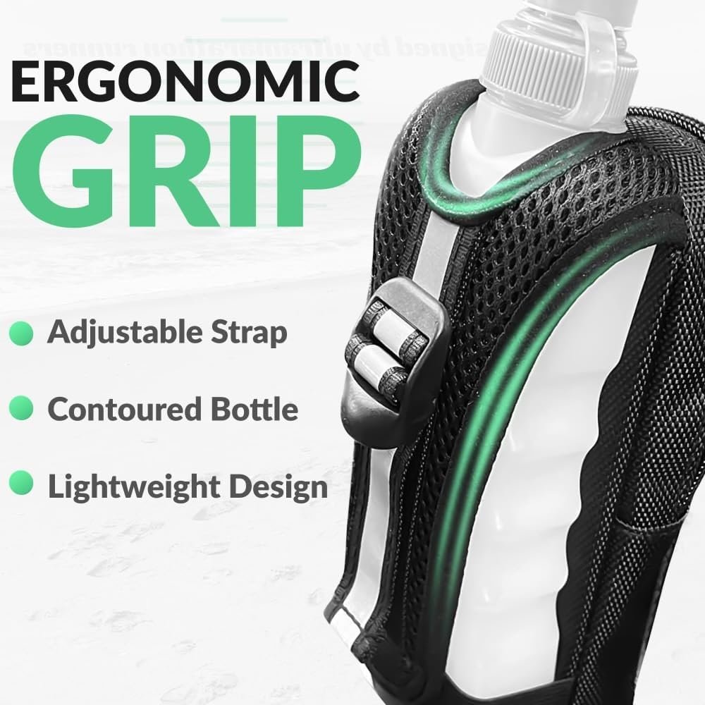 ERGONOMIC GRIP- Adjustable hand strap with contoured bottle so that your fingers stay relaxed and comfortable. Lightweight design.