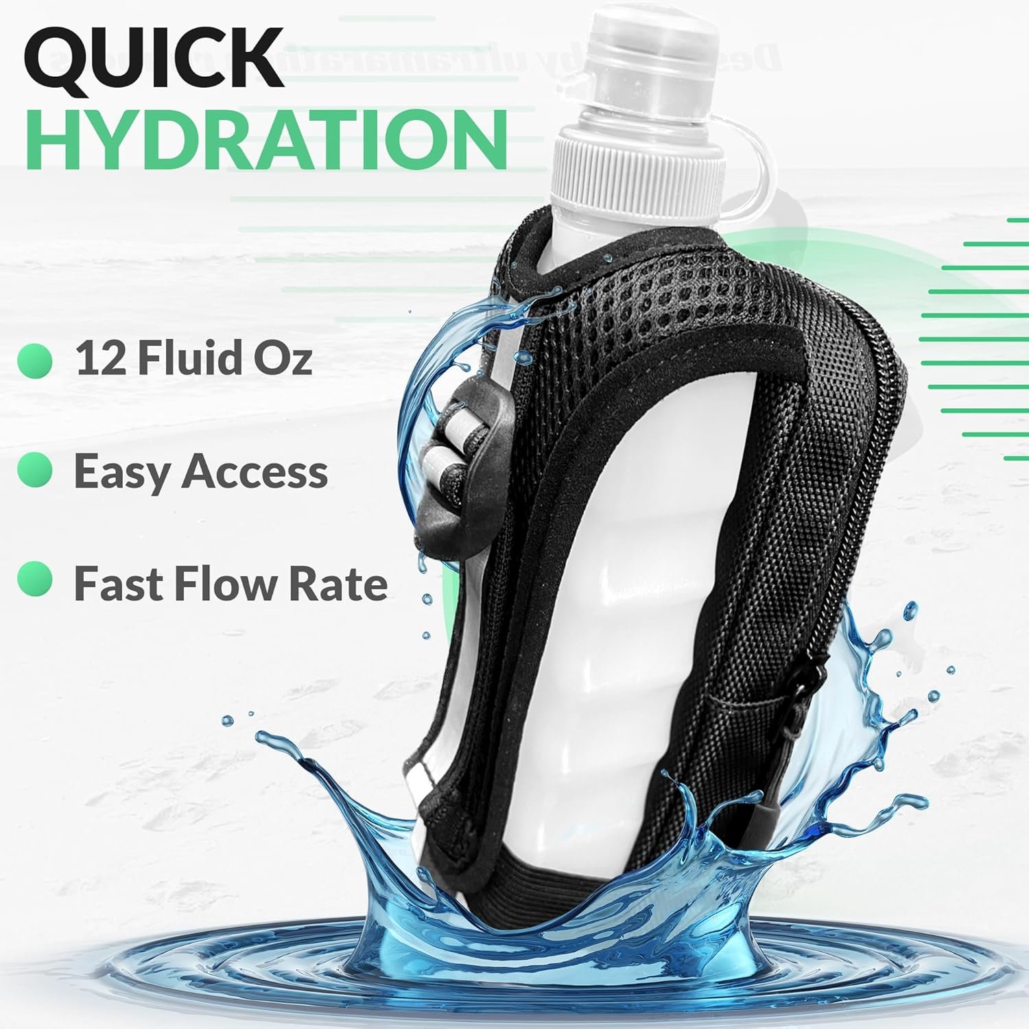 QUICK HYDRATION – Offers quick burst of fluids to keep you cool and hydrated while running. 12 oz of water capacity