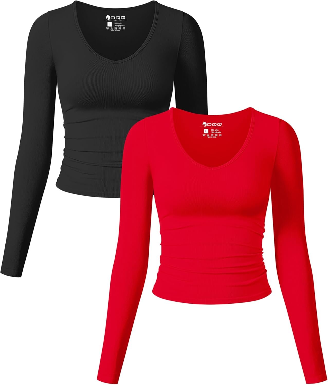 OQQ Womens 2 Piece Long Sleeve Shirts V Neck Ruched Stretch Sexy Basic Tops Fitt… $32.99