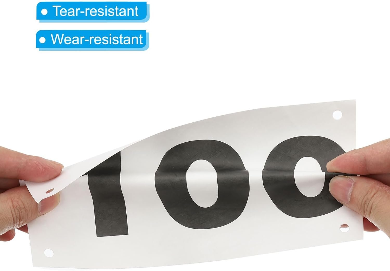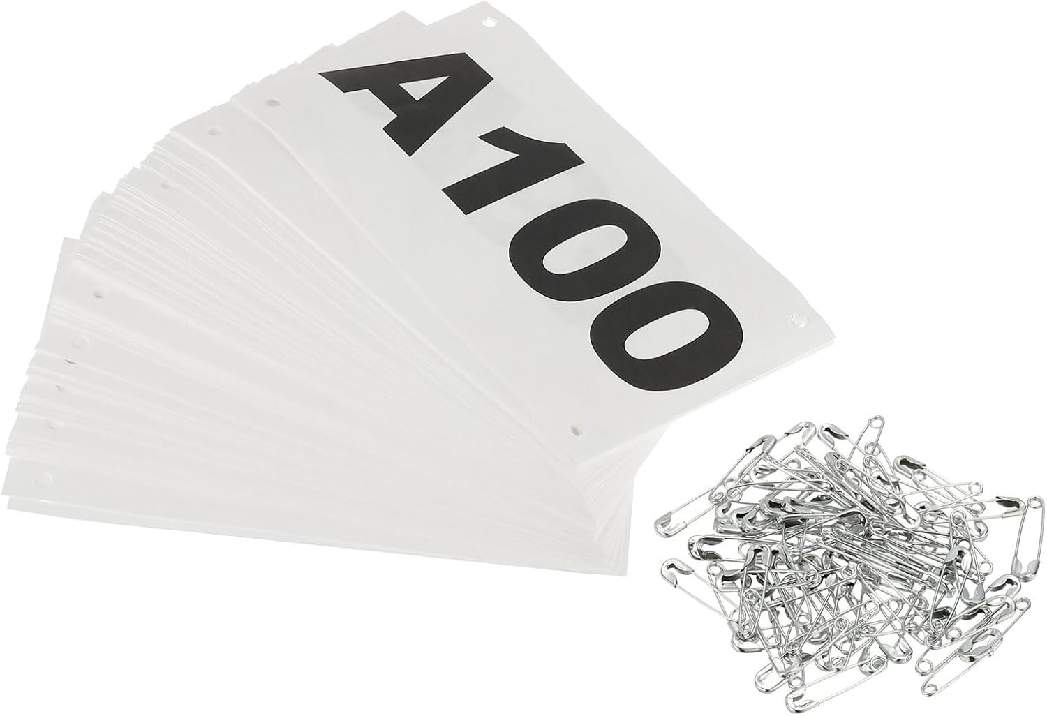 Package includes: Numbers from A1 to A100, each Tearproof Race Competitor Numbers is equipped with a silver paper clip, you can fix it on your clothes without buying other accessories.