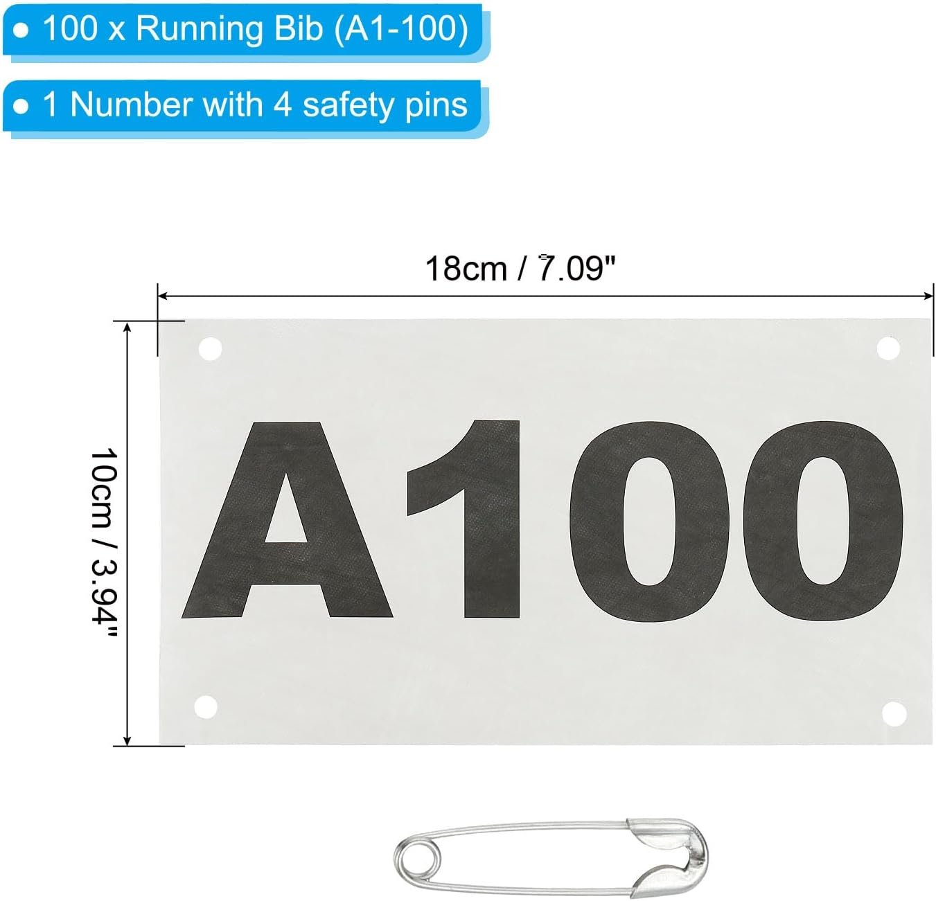 Packing list: 100 x Running Bib (A1-100)