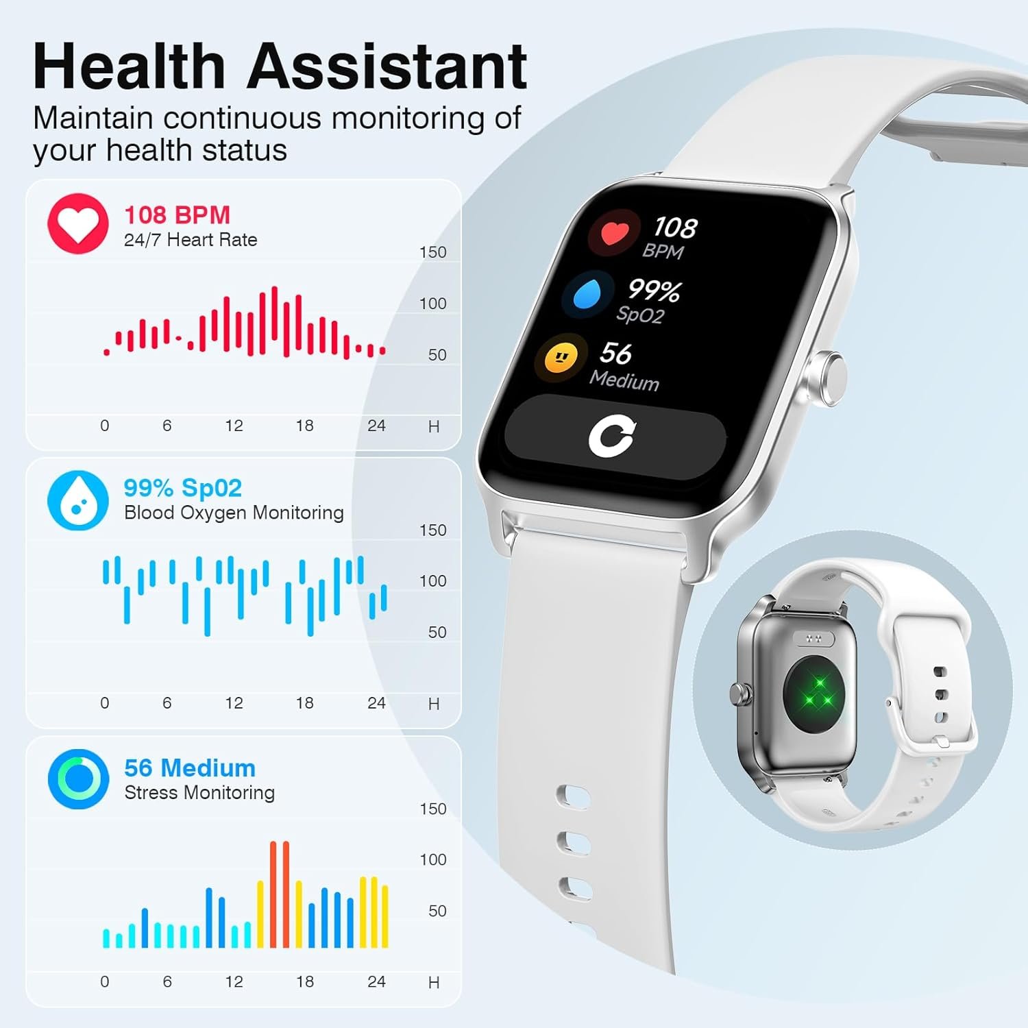 24/7 Monitor Your Health: The fitness smart watches with advanced sensors continuously monitoring all-day your heart rate, blood oxygen, and stress level, ensuring that you are always aware of your physical condition