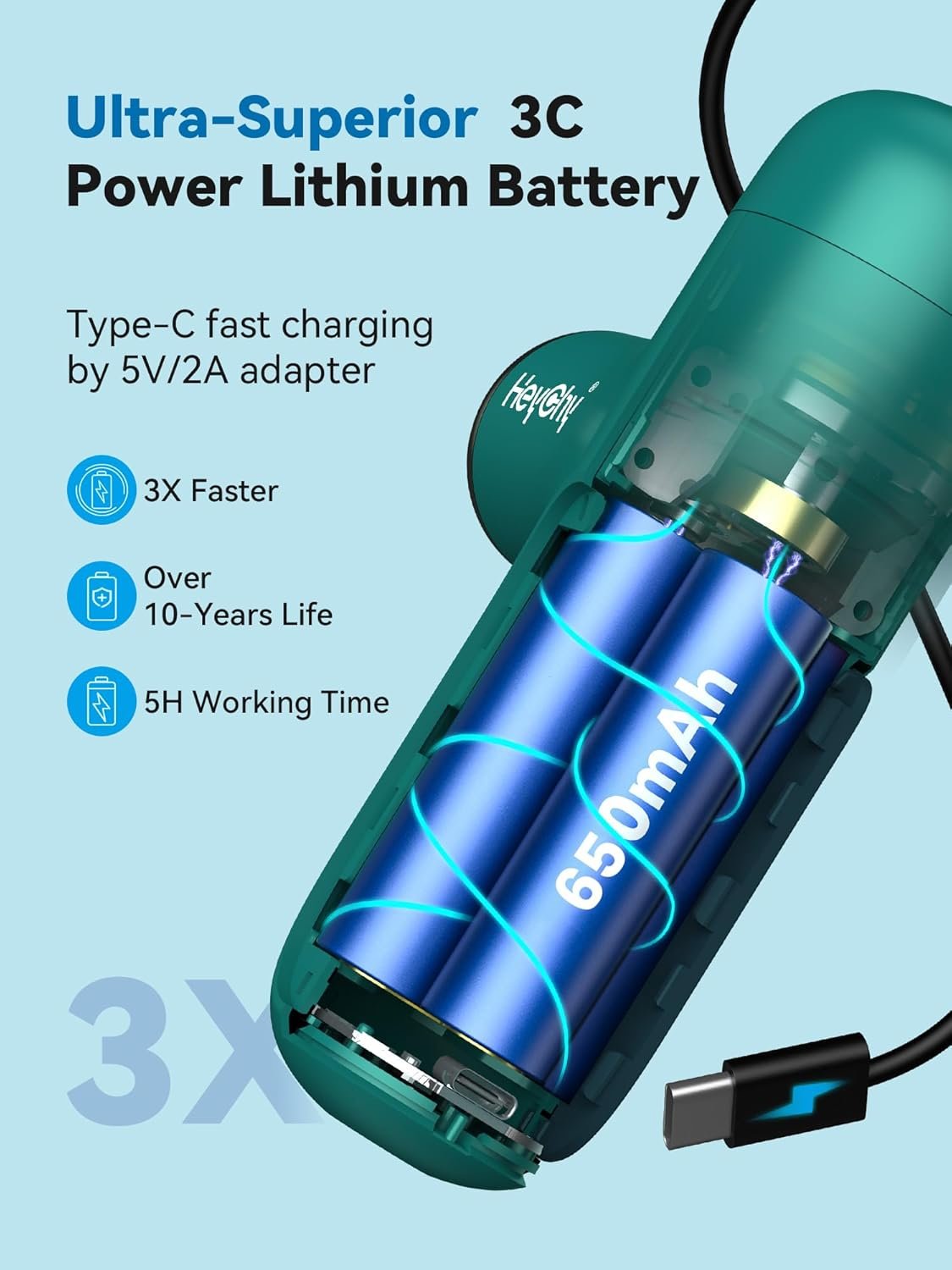 【Ultra-Superior 3C Power Battery】This percussion muscle massager gun is specially equipped with 3C Power Battery. Compared with other products, it has 3X discharge rate for power supply and 5X battery cycle life. At the same time, 650mAh battery capacity allows it to be used continuously for 5 hours.