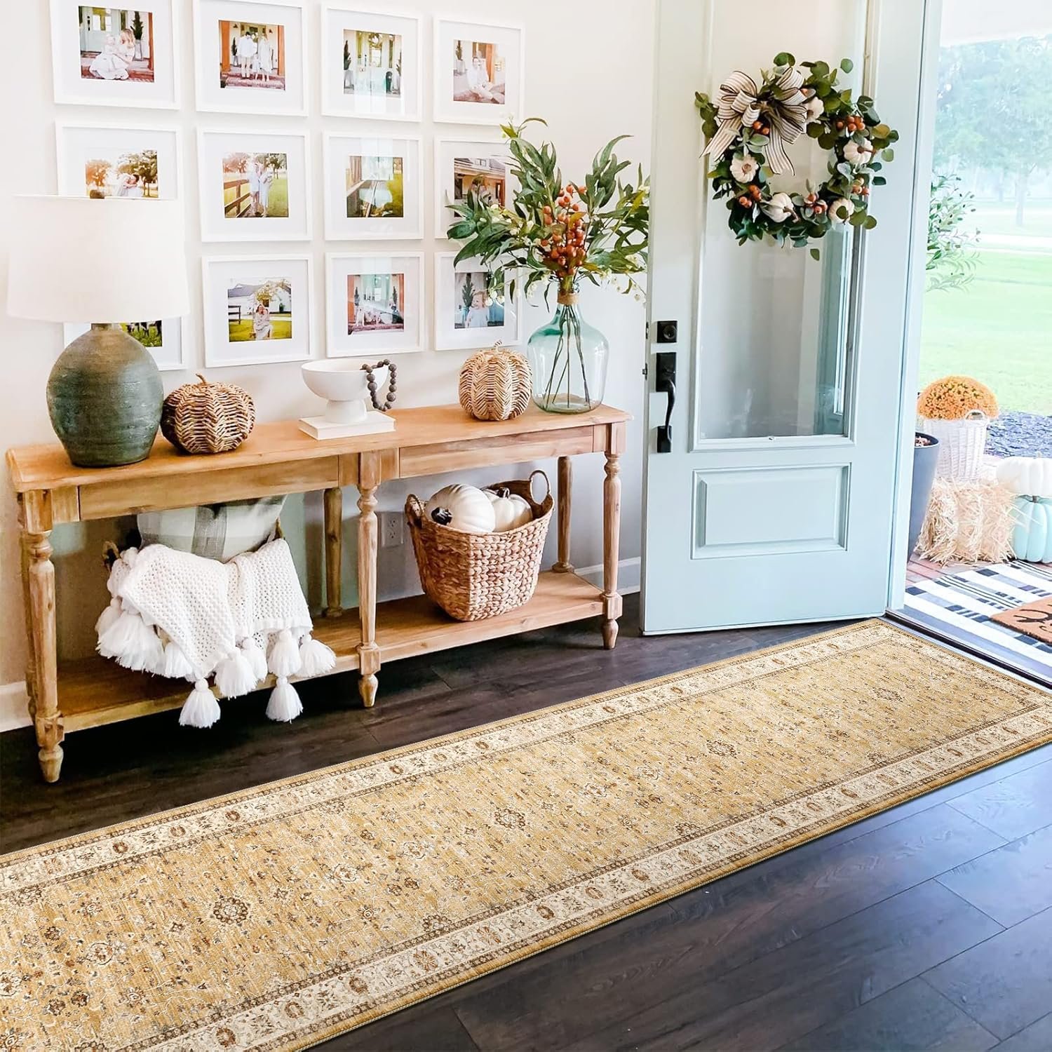 【One-piece Design】 The carpet runners for hallway are geared to make life easier which is why runner rugs with rubber backing lay down in a snap! When washable runner rug arrives, simply place it flat in the desired space. It’s easy to fold and unfold, with no need to worry about matching corners, allowing time for creases to flatten and level.