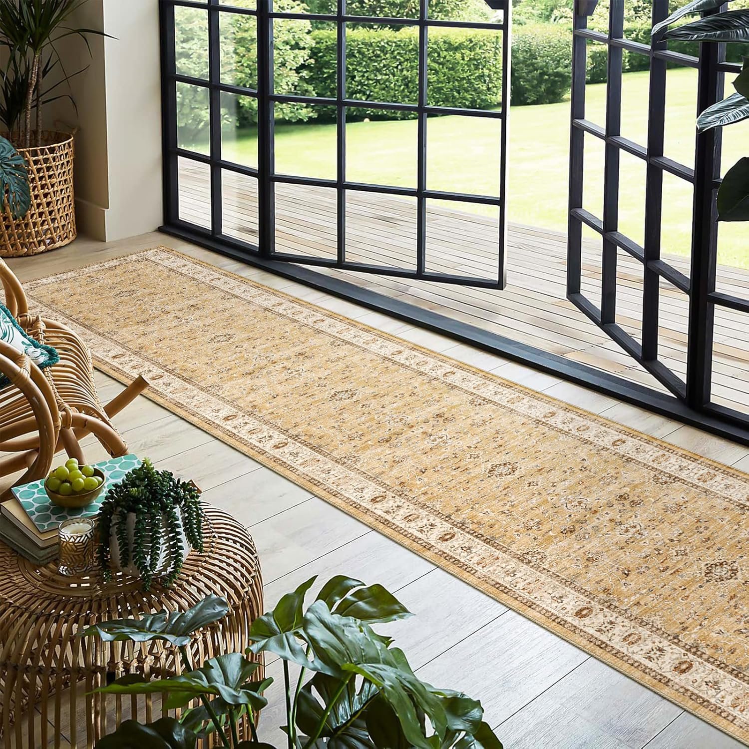 【Ideal for High Traffic】 The washable rug runner is made from one hundred percent polyester material for craft with precision, not only ultra-soft but also stain resistant. Its low pile height and non-shed fabric composition make the floor runner easy to clean and a durable choice for high traffic areas such as living room, dining room, kitchen, and hallways.